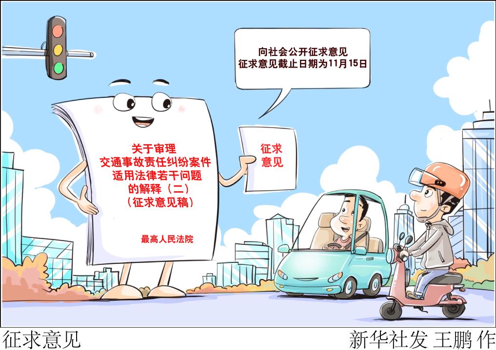 最高人民法院11月9日公布关于审理交通事故责任纠纷案件适用法律若干问题的解释(二)(征求意见稿),向社会公开征求意见。该司法解释拟就“开门杀”、电动自行车与机动车发生交通事故造成机动车一方人身损害等问题作出规定,征求意见截止日期为11月15日。