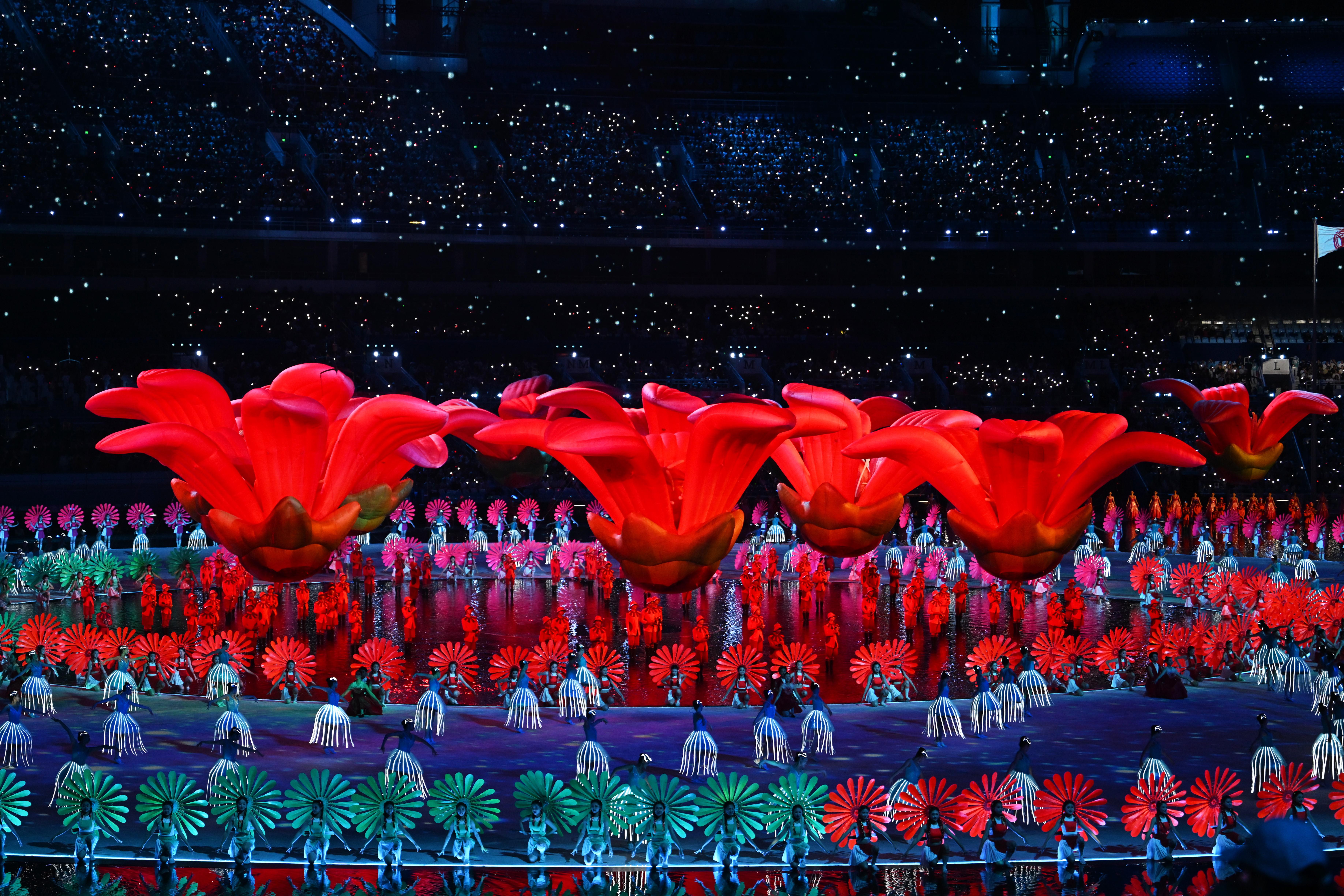 十五运会开幕式打造同心圆“水舞台”。图/新华社