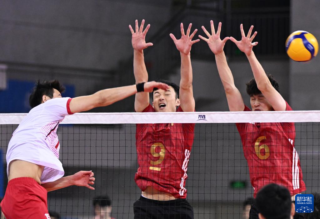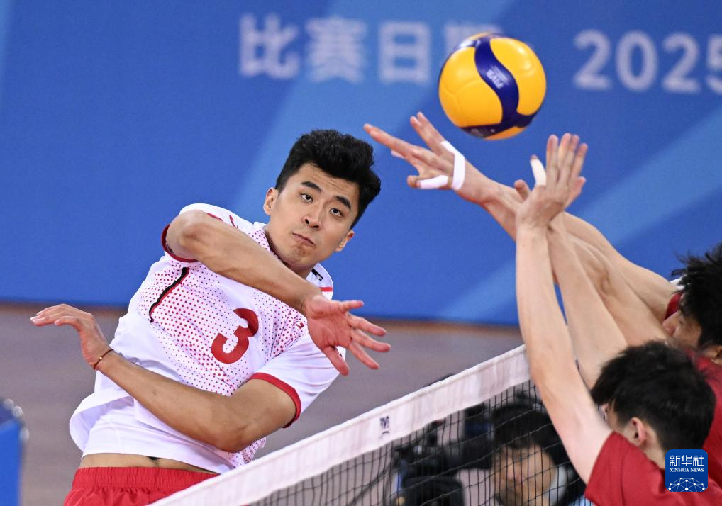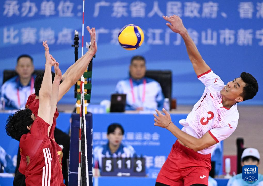 当日,在广东江门举行的第十五届全国运动会排球男子成年组小组赛A组比赛中,浙江队3比1战胜上海队。