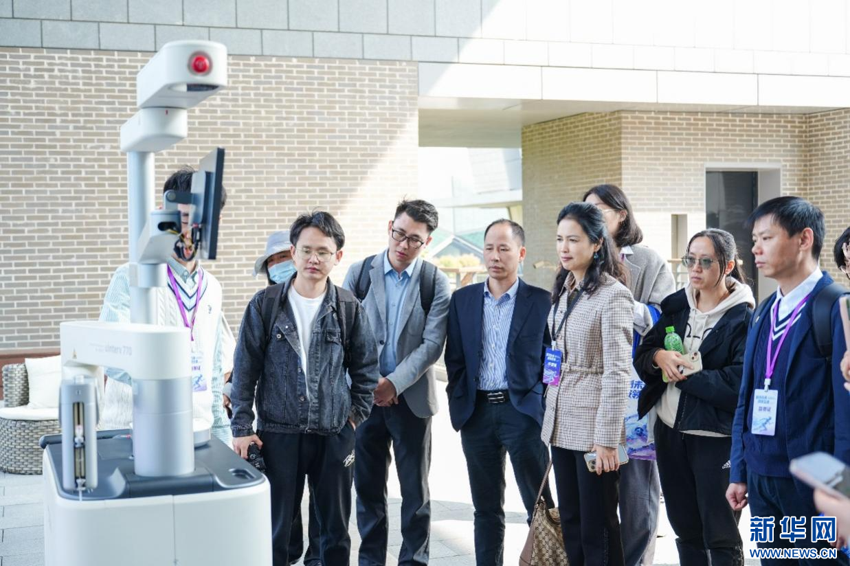 评委团参观机器人设备。新华网发(大赛组委会供图)