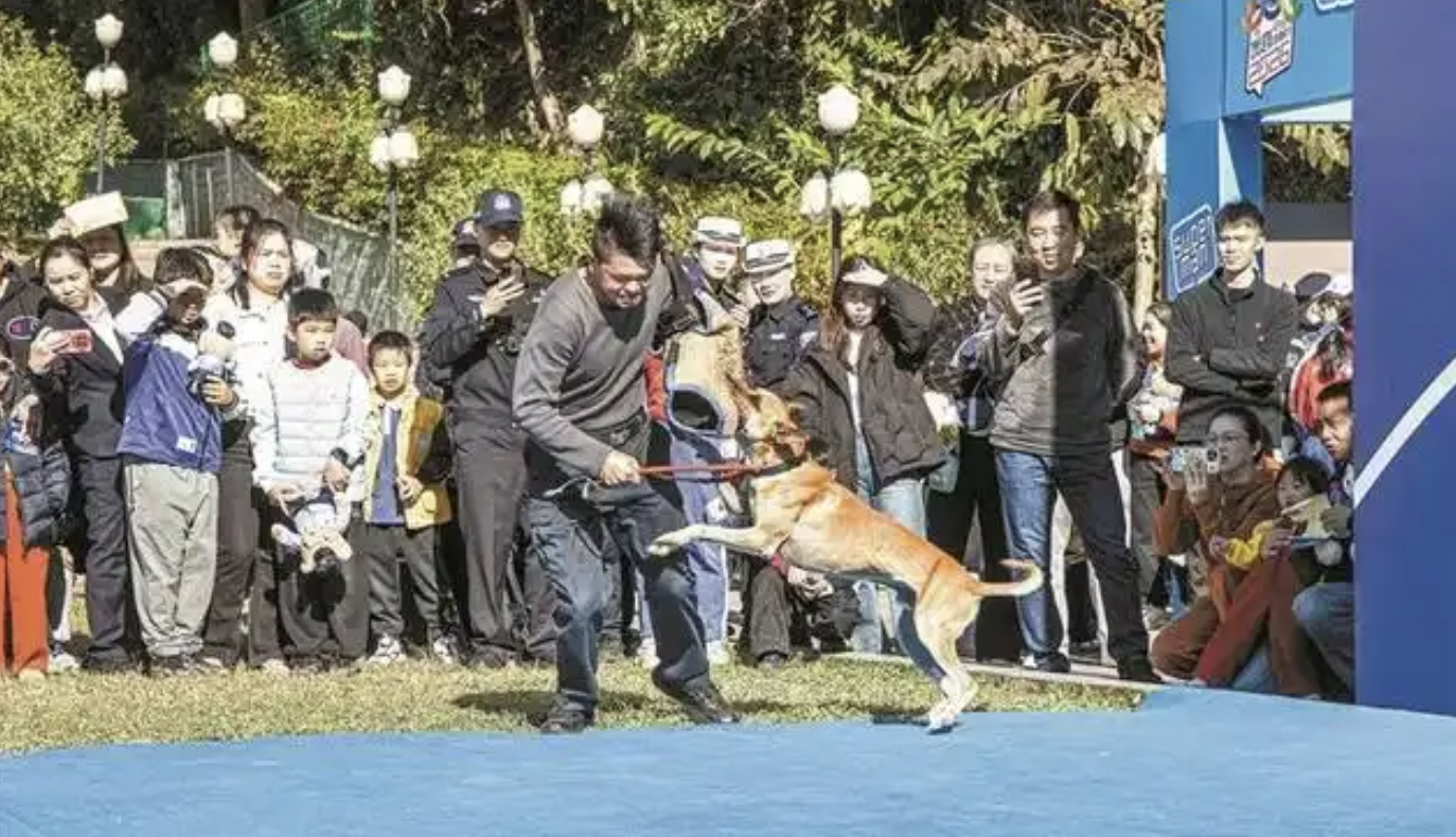 警犬演练让现场观众“哇”声一片。