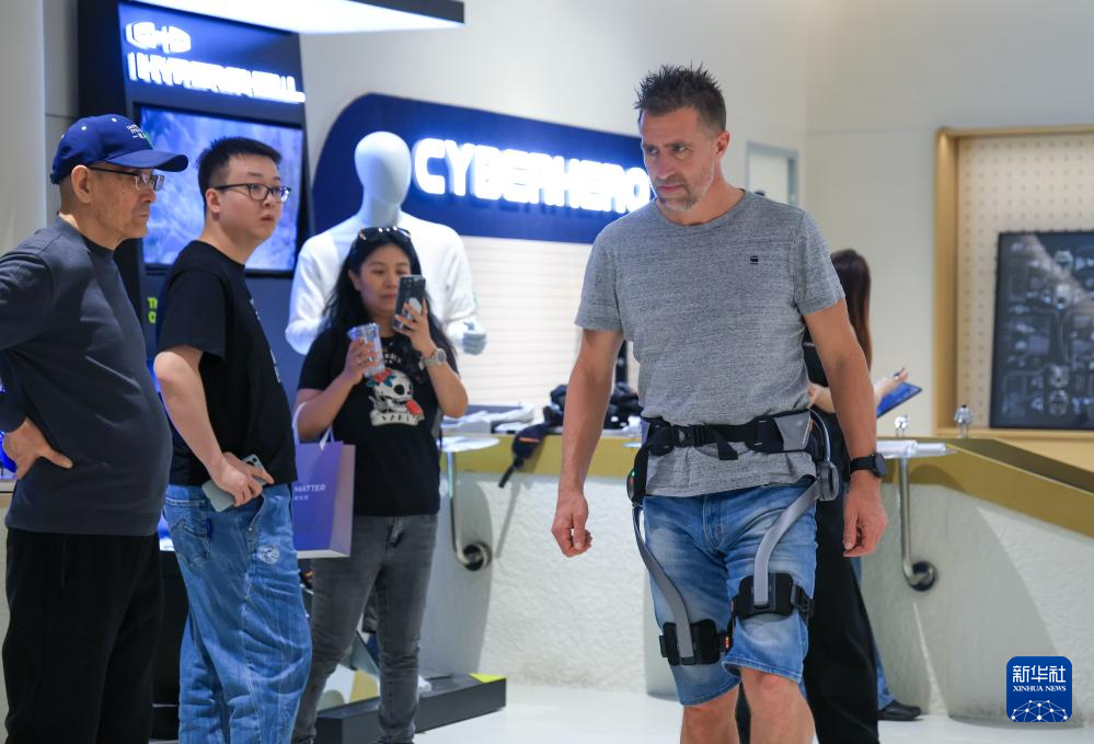 1月18日,顾客在深圳市南山区的INNO100全球创新旗舰店体验外骨骼穿戴设备。新华社记者 毛思倩 摄