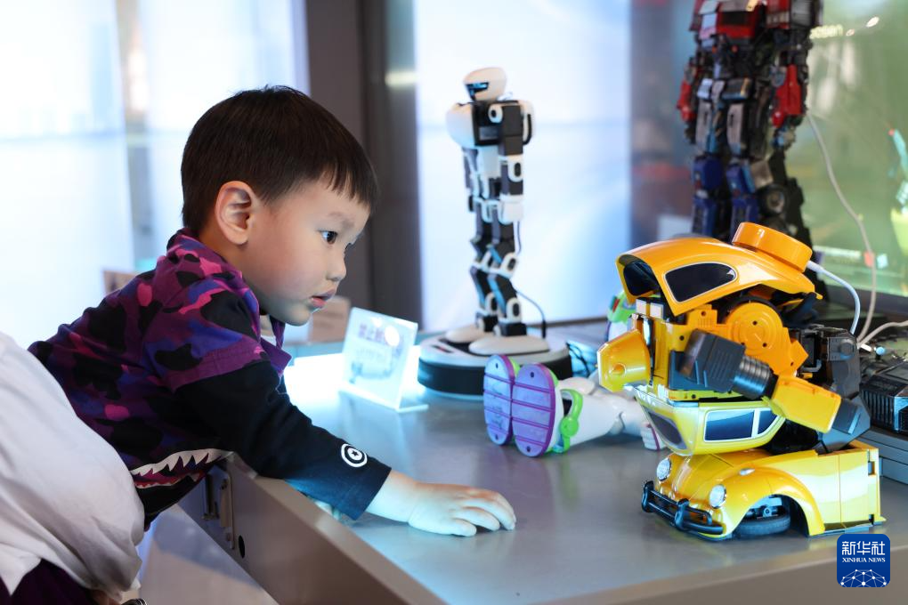 1月16日,在深圳市龙岗区的全球首家机器人6S店,小朋友与机器人互动。新华社记者 梁旭 摄