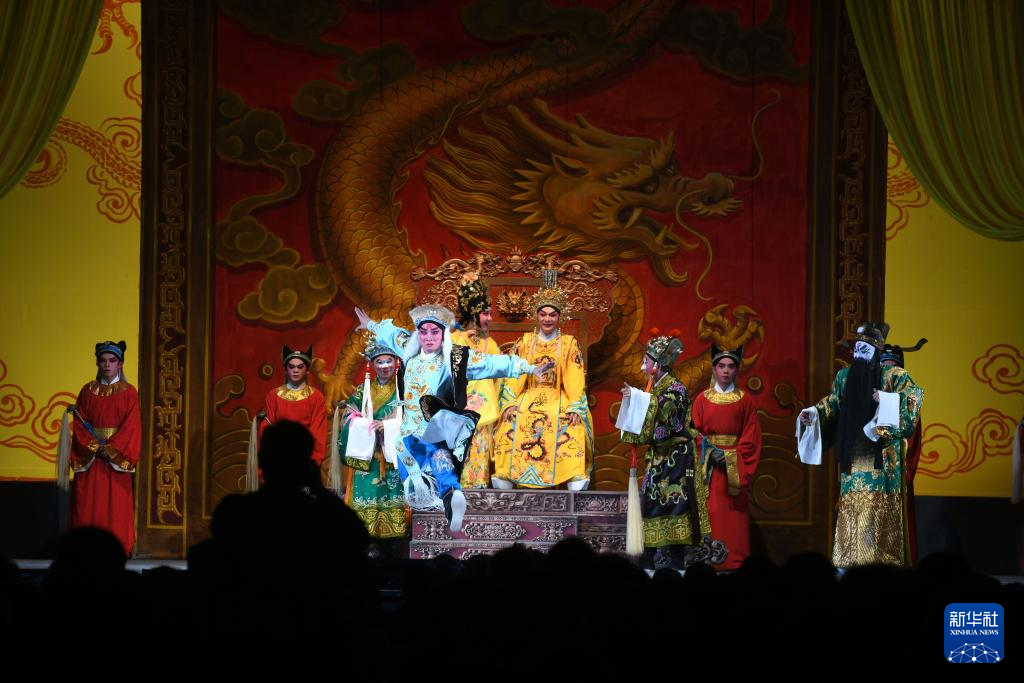 2月27日晚,在广东省湛江吴川市振文镇鱼笱埠,群众观看广州粤剧院下辖广州粤剧团演出的《唐明皇与杨贵妃》。新华社发(许建梅 摄)