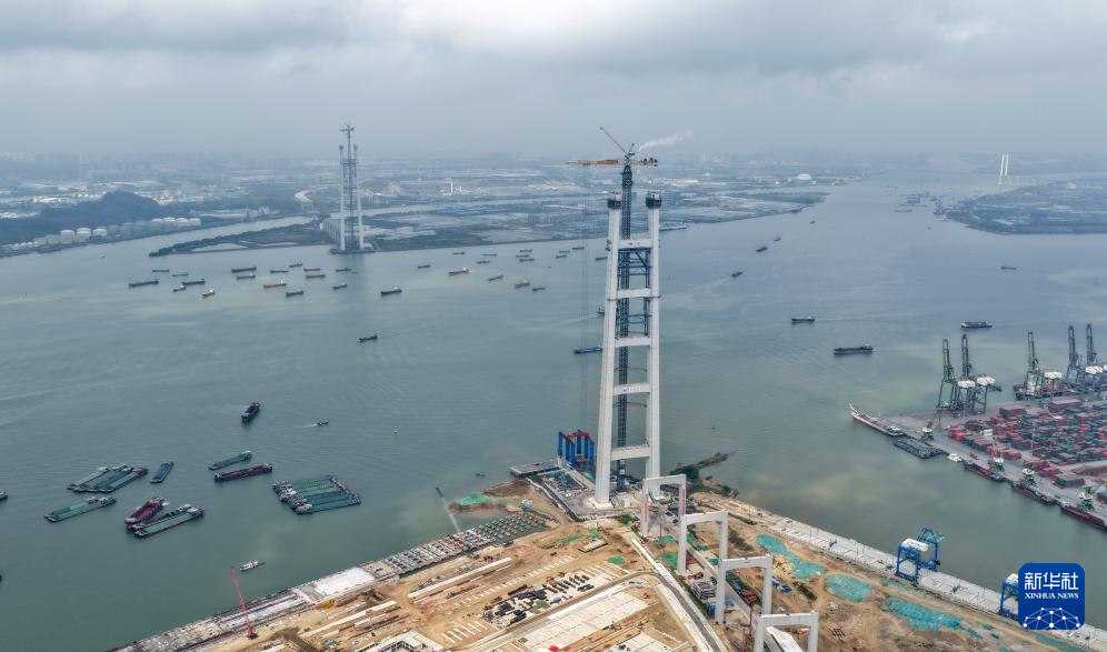 3月26日,粤港澳大湾区核心枢纽工程狮子洋通道关键控制性工程——狮子洋大桥实现东、西主塔封顶,转入上部结构施工。