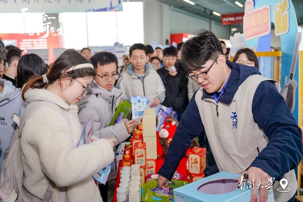 本次活动最具新意的环节,当属天河区精心打造的“津天遇见天河”人才探索之旅互动打卡区,将岭南风情与天河魅力搬到南开校园,让学子们在求职之余,沉浸式感受天河的城市温度与产业活力,成为现场一道亮丽的风景线。