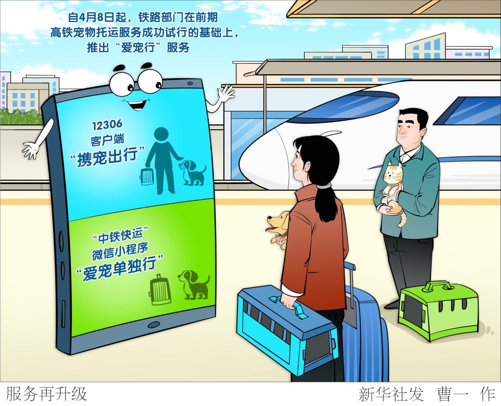 记者从中铁快运股份有限公司获悉,自4月8日起,铁路部门在前期高铁宠物托运服务成功试行的基础上,推出“爱宠行”服务,提供“携宠出行”与“爱宠单独行”两种托运模式,办理宠物托运业务的高铁车站增至121座、列车增至228趟,将更好地满足旅客多样化需求。
