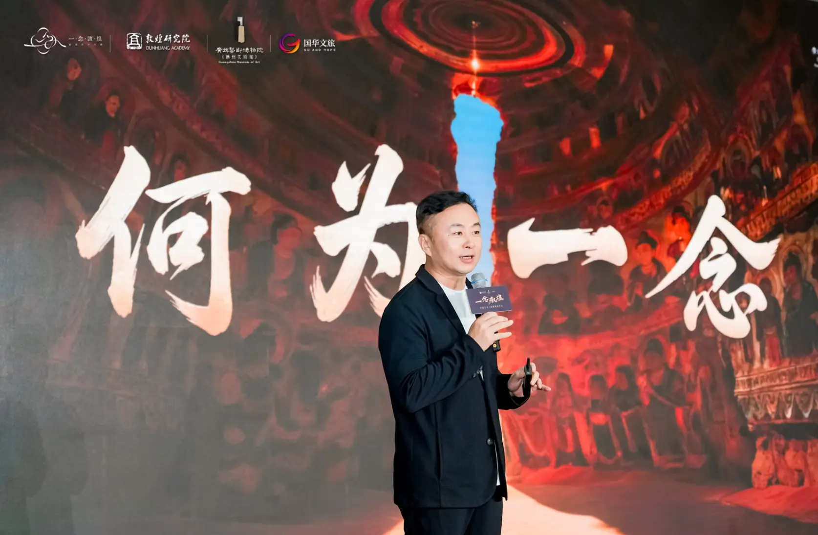 发布会现场,项目出品人、策展人、国华文旅总裁王鹏为展览名破题,详细介绍了“一念敦煌”的由来。他表示:“敦煌,皆因一念而成。因为一个念头,唐代工匠落笔开窟、匠心造物;因为一个念头,无数人守护敦煌、延续文脉、丰满内涵。这场大展同样因为一个念头,从动心起念到打磨落地,才有了今天呈现在大家面前的这场敦煌文化盛宴。”