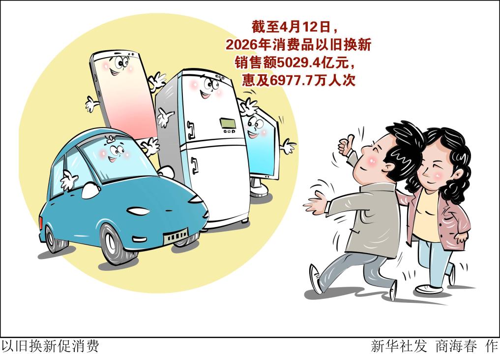 记者4月15日从商务部获悉,商务大数据监测显示,截至4月12日,2026年消费品以旧换新销售额5029.4亿元,惠及6977.7万人次。