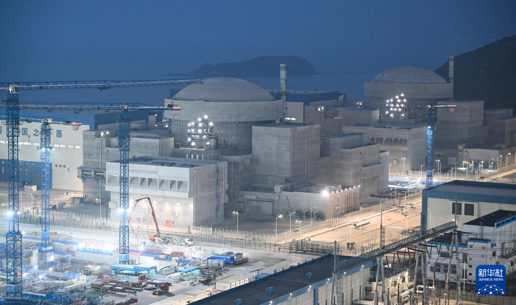 这是4月19日拍摄的中广核广东太平岭核电项目1号机组(右)、2号机组夜景。新华社记者 邓华 摄