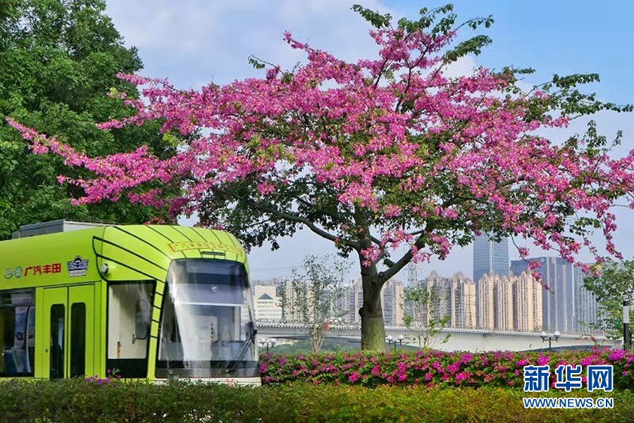 美丽异木棉让城市充满生机和活力。新华网发